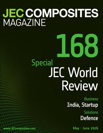 JEC Composites Magazine is the point of contact of the international Composites Community, 6 times a year, with topics covering scientific information, business, technology, manufacturing, and application sectors trends.